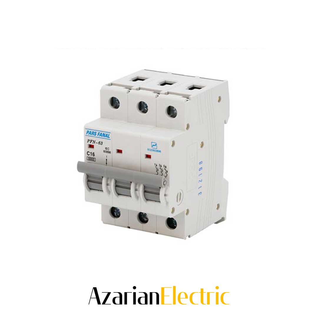 کلید مینیاتوری سه پل 1 الی 63 آمپر مدل PFN-3P پارس فانال 6KA